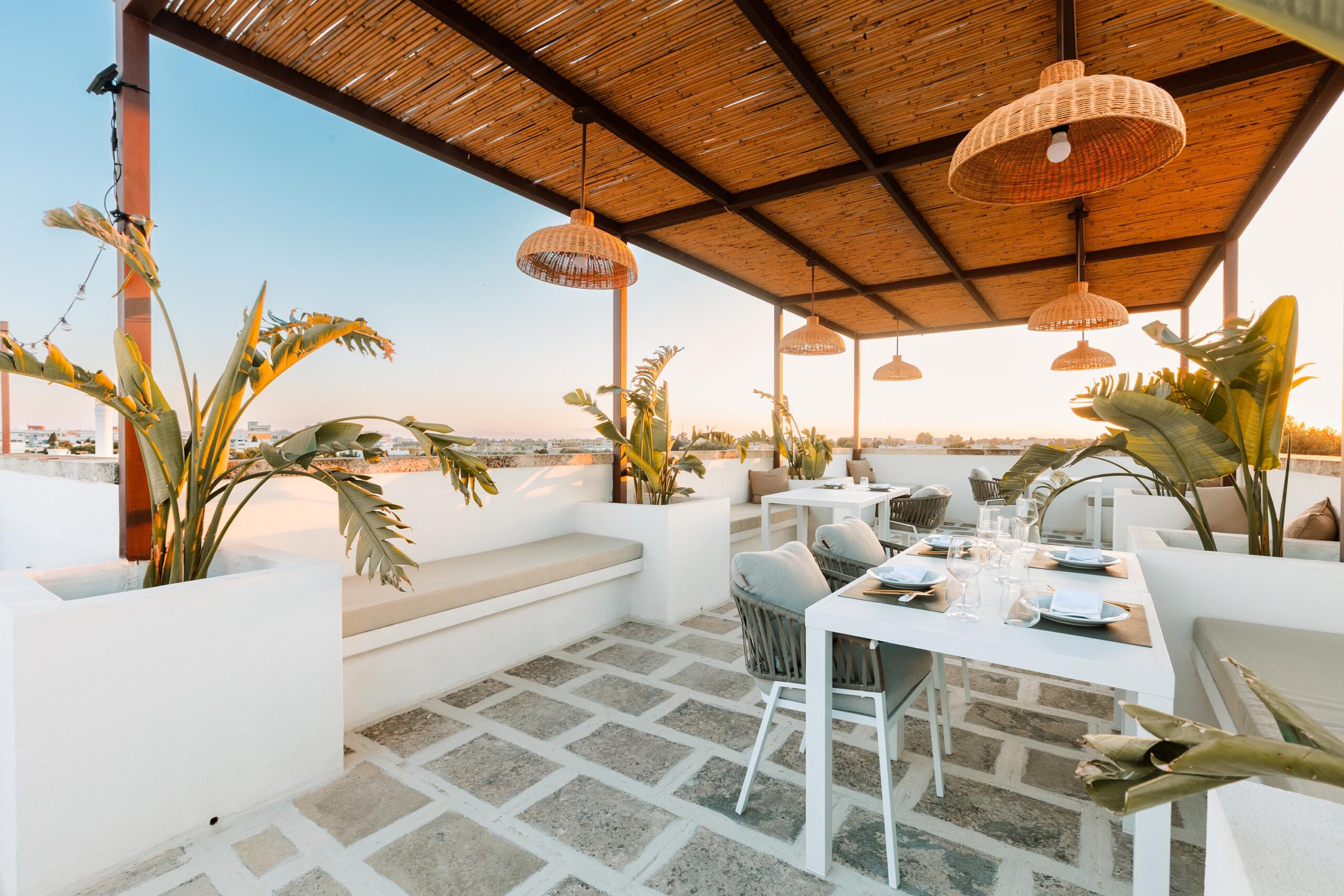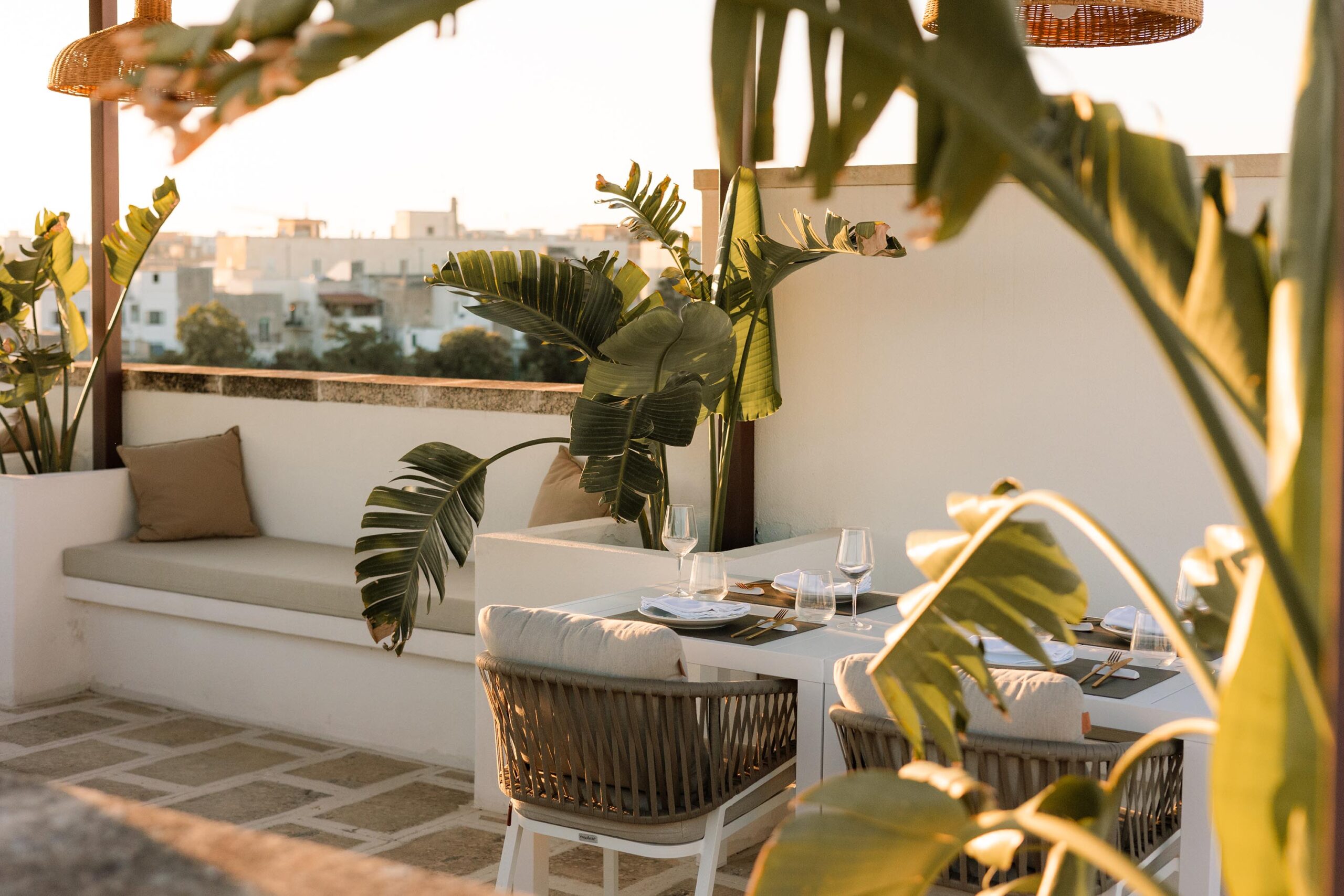 uno spazio all’aperto arredato con gusto, tra verde rigoglioso, luci soffuse e materiali naturali. Il terrazzo è il luogo ideale per gustare una colazione all’aria aperta (vento permettendo), sorseggiare un calice di vino al tramonto o semplicemente lasciarsi incantare dalla vista sul Parco delle Tagghiate e sulle Ex Cave di Marco Vito.